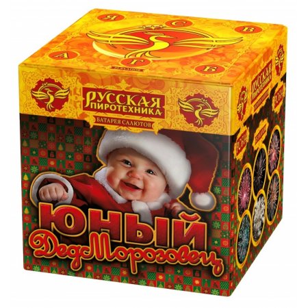 Первая часть фейерверк шоу от батареи салютов «Юный Дед Морозовец» состоит из двух пиротехнических эффектов: салютная сфера из красных комет с серебряными хвостами и почти такого же салюта, но из зелёных звёзд с серебряными шлейфами. Вторая часть набрана из фейерверков в виде пиротехнических пионов с красными и белыми мерцающими огнями. И наконец финальный залп батареи фейерверков «Юный Дед Морозовец» – великолепный золотой салют из сотни трескучих сфер!
